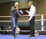 Auch Fred Jüngerich, der Bürgermeister der Verbandsgemeinde Altenkirchen-Flammersfeld und begeisterter Ausdauersportler, besuchte die Kämpfe und ließ es sich nicht nehmen, zusammen mit Vadim Horst in den Ring zu steigen. Doch keine Angst, sie prügelten nicht aufeinander ein, sondern tauschten nette Worte aus. Fred Jüngerich gratulierte namens der VG dem Box Ring Westerwald zum Jubiläum und überreichte ein wertvolles Buch zur 700-jährigen Chronik von Altenkirchen, verpackt in einer hübschen Werbetasche der Verbandsgemeinde.
