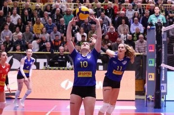 Die Deichstadtvolleys: Carla Fuchs, Amelie Strothoff, Hilkka Hujanen, Elisabeth Kettenbach, Laura Broekstra, Laura Berger, Lydia Stemmler, Klara Single, Anna Hartig, Maya Sendner; Kristin vom Schemm Trainer: Tigin Yağlıoğlu