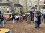 Bendorf. Rund um die Medarduskirche - Marktstände in weihnachtlich dekorierten Holzbuden, die den Passanten Kunsthandwerk, exklusive Pflegeprodukte und Bekleidung präsentieren, gehören zum Weihnachtsmarkt am Rhein. Das Besondere, der Rindenmulch, dessen Schicht auf dem Boden in diesem Jahr leider nicht sehr dick ist, gibt ihm ein besonderes Flair. Im Vorübergehen erhascht man da Phrasen verschiedener Unterhaltungen, dass er insbesondere das Stolpern bremsen würde, wenn man zu viel Glühwein getrunken hätte.