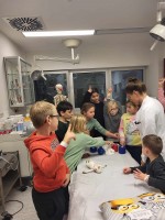 Nach einer Pause zur Stärkung mit Snacks und Getränken ging es dann zurück in einen chirurgischen Ambulanzraum zur heiß erwarteten Gipsanlage. Nicht nur die mitgebrachten Kuscheltiere erhielten Verbände zur Heilung von Verletzungen und Prellungen, sondern es wurden fleißig Unterarme eingegipst – auch gerne in den Farben des Lieblings-Fußballvereins.