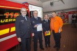 Carl-Heinz Cäsar, der seinerzeitige Gründer der Bambini-Wehren im Westerwaldkreis und Berater von Dieter Stein bei der Gründung, hatte eine ganz besondere Spardose mitgebracht. Kreisjugendfeuerwehrwart Matthias Lemgen hatte Süßigkeiten im Gepäck. Christian Ritter gratulierte für die Fördervereine der Feuerwehr und First Responder der Verbandsgemeinde und übergab 900 Euro für den Nachwuchs.