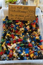 An sieben langen Tischreihen boten die Händler eine Riesenauswahl an Lego-Zubehör: Bausteine, Figuren, Bauplatten, Sets, Kilowaren und unzählige Einzelteile in Fächerboxen. Zwei Händlerinnen berichteten übereinstimmend, dass diese kleinen Teilchen, die seit Jahrzehnten ständig von Staubsaugern verschluckt werden, das Hauptgeschäft ausmachen. Sie sind alle in sehr gutem Zustand, durchaus mit Neuware zu verwechseln, weil sie vor dem Verkauf genauestens auf etwaige Mängel untersucht werden.