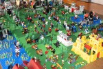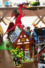Im Nebenraum war eine liebevoll gestaltete Mittelalter-Landschaft zu bewundern mit Fachwerkhäusern, Burgen, Wald, Ritter, Kutschen und einem feuerspeienden Drachen. Sie wird ständig erweitert.