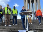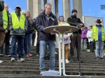 Neuwied. 11 Uhr, der Parkplatz unterhalb der Freitreppe am Neuwieder Pegelturm füllte sich schnell mit Menschen, die bereit sind, ihre Meinung nicht schweigend für sich zu behalten. Auch wenn das Treffen keine lautstarke Demonstration sein sollte, einzig der Initiator Peter Schwarz und Pfarrer Tilmann Raithelhuber das Anliegen dieses Vormittages in Worte fassten, war die Meinung der Teilnehmer hörbar und sichtbar. Mit Fahnen, Aufklebern, Buttons und selbstgestalteten Schildern zeigte man seine Einstellung.