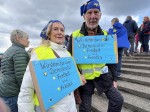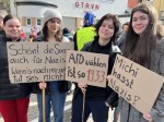 Peter und Inge Gütler, deren Schilder eindeutig ihren Einsatz für Demokratie, Frieden und Freiheit zeigten, trugen Europa vielleicht sogar schützend auf ihren Köpfen. Gütlers Worte: "Wir sind Europa!" Auch die Jugend zeigte ihre Meinung. Janet, Leni, Karla, Rebekka und Ronja - junge Frauen um die 20 Jahre alt, die nicht nur mit ihren Schildern ihre Meinung äußerten. Es sein wichtig auf die Straße zu gehen und für Demokratie und Gleichheit einzustehen.