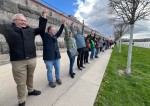 Die Menschenkette war bunt gemischt. In ihrer Geschlossenheit ein Zeichen für den Zusammenhalt und die Kraft, Demokratie und Toleranz zu erhalten und verteidigen. Kalt und windig und auf dem Rhein bildeten sich kleine Sturmwellen, als die Gemeinschaft sich vom Pegelturm bis zum Biergarten am Ufer des Rheines in Bewegung setzte. Hand in Hand! In der Menge auch Landrat Achim Hallerbach und Neuwieds Oberbürgermeister Jan Einig. Ob es politische Gründe gäbe, dass sie dabei seien? Die Antworten der beiden fast synchron "Nein!". Auch ihnen ist es ein persönliches Anliegen, bei dieser Aktion mitzumachen. Hallerbach brach bei der letzten Kreistagssitzung einen Redebeitrag der AfD durch Ordnungsruf ab, der zu einem Eklat geführt hatte. Die nächste Aktion am 4. Mai wird die Rheinpromenade verlassen. Geplant ist ein Demonstrationszug durch Neuwied, ein Festival für Demokratie und Toleranz, verriet Klaus Hummel, der heute stellvertretender Versammlungsleiter war. Neuwied zeigt Meinung, steht nicht erst auf, sondern läuft weiter. (Elke Stockhausen)