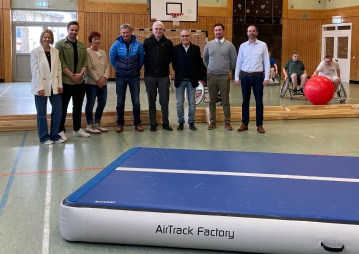 Die Entscheidung für einen Sport-Rollstuhl und eine Airtrack-Sportmatte wurde in enger Abstimmung mit der Schule getroffen: "Wir hatten schon länger den Wunsch, eine solche Matte für unseren Sportunterricht anzuschaffen, weil sie viele Einsatzmöglichkeiten für unsere heterogene Schülerschaft bietet", so Thomas Müller. Die Sportmatte ermöglicht den Schüler nicht nur das Springen und Turnen, sondern fördert auch die vestibuläre Stimulation bei Schülern mit Mobilitätseinschränkungen. Der neue Sport-Rollstuhl stockt den Bestand von knapp 15 Sport-Rollstühlen der Schule auf und ermöglicht es sowohl Rollstuhlfahrern als auch Läufern, sich in verschiedenen Sportarten auf Augenhöhe miteinander zu duellieren - beispielsweise im Rollstuhl-Basketball.