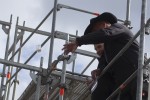 Zimmermann Manfred Spohr war mit seinem traditionellen Richtspruch, dass der Bau vor Blitz, Wasser und vielleicht sogar vor Krieg bewahrt bleiben möge, sehr aktuell.