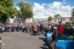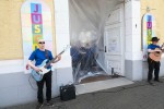 Neuwied. Der Demonstrationszug startete am Samstag, dem 4. Mai punkt 13 Uhr mit Sirene, Gitarrenmusik und einer Performance des Jungen Schlosstheaters, die zum Wahlgang am 9. Juni aufforderte. Moderator Eckhard Lenz bezeichnete die Stimmabgabe als erste persönliche Chance politischer Einflussnahme, die zweite sei, selbst Politiker zu werden. Das Neuwieder Bündnis für Demokratie und Toleranz umfasst alle rechtsstaatlichen Parteien und Vereine, die gemeinsam aufstehen und wählen gehen wollen. "Heute wollen wir die Kunst sprechen lassen", forderte Lenz zur Teilnahme an dem Demonstrationszug auf. Unterschiedliche Kunst-Aktionen an zehn Stationen mit Jazz, Lesung, Rock, Kunst-Installation, Pantomimik und Folklore im Rahmen des Zuges führten entlang des Neuwieder Schlosses zur Deichmauer und zur Freitreppe am Rhein, anschließend zum Alten Rathaus, zum Kunsthof der Marktkirche, dann in die Fußgängerzone, zum Fahnenhügel auf dem Luisenplatz und zum Schluss zur Artothek des Neuen Mittelrheinischen Kunstvereins. Dort erfolgte die Ausstellungseröffnung der Gruppe 93 unter dem Titel "Vielfalt" als Bestandteil von "Kunst im Karree". Wir berichteten.