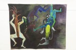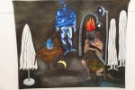 Bunker 5 ist den großflächigen Gemälden Inka ter Haars vorbehalten. Ihre Serie "Sieben Nächte", die sich mit postapokalyptischer Szenerie nach psychischer und physischer Gewalt und Zerstörung befasst, ist im b-05 zu ersten Mal vollständig ausgestellt.