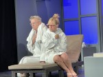 "Aufguss", gefühlt habe er dieses Stück schon mehr als 1000 Mal gespielt und ziehe das Theater dem Fernsehen vor. So auch Dorkas Kiefer, für sie ist Theater die Wahl, die Reaktionen des Publikums sei für sie wichtig. Madeleine Niesche musste zugeben, dass man selbst manchmal mit dem Lachen kämpfen muss, wenn man auf der Bühne steht und Maximilian Claus schien sichtlich gerne mit diesem "improvisationsfreudigen Ensemble" zu spielen.