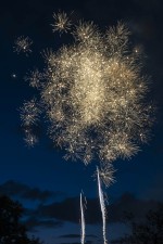 Die Besucher warteten gespannt auf das Highlight des Abends, ein eindrucksvolles Boden- und Höhenfeuerwerk, das zur Feier des Jubiläums veranstaltet wurde. Überraschenderweise wurden von beiden Seiten der Wied bunt leuchtende Fontänen in den Himmel geschossen. Das Publikum spendete daher am Ende Applaus für die Feuerwerker.