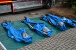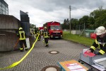 Dierdorf. Das vorgegebene Übungsthema war ein angenommener Austritt von Chlorgas. Hier hieß es durch geeignete Maßnahmen das Verströmen des Gases zu unterbinden. In den Betriebsräumen im Kellergeschoss des Hallenbades mussten Behältnisse mit Gefahrenstoffen geborgen werden, aus denen Flüssigkeiten ausgetreten waren. Diese Flüssigkeiten galt es nach der Bergung in sichere Behältnisse umzufüllen. Diese Arbeiten erforderten für die Einsatzkräfte das Tragen von Chemikalienschutzanzüge inklusive Atemschutzausrüstung. Es sind umfangreiche Vorbereitungen zu treffen, ehe die Einsatzkräfte in den Gefahrenbereich gehen können. So muss zum Beispiel eine Dekontaminations-Station aufgebaut werden, in der die Kräfte nach dem Einsatz wieder gereinigt werden, ehe der Chemikalienschutzanzug abgelegt werden kann. Eine wichtige Aufgabe ist herbei die Kontrolle der verbleibenden Zeit für der Sauerstoff-Versorgung für die Atemschutzgeräteträger.