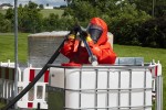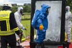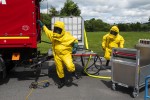 Weitere Einsatzkräfte waren damit beschäftigt, für entsprechende Absperrungen zu sorgen und Gefahren- und Warnbereiche festzulegen. Es musste eine Wasserversorgung aufgebaut werden, um gegebenenfalls austretende giftige Dämpfe mit einem Wassernebel niederschlagen oder begrenzen zu können. Während der gesamten Übung wurden regelmäßig verschiedene Messungen durchgeführt, um bei erhöhten Werten sofort reagieren zu können.
