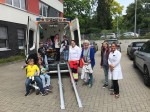 Nach einer kleinen Stärkung ging es dann in den Hof zur Besichtigung eines Krankenwagens. Auch hier gingen die Kinder direkt auf Tuchfühlung, nahmen auf der Patiententrage Platz und stellten reichlich Fragen, welche von der KTW-Besatzung gerne beantwortet wurden.