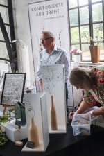 In mehreren Ausführungen konnte man handbemaltes Porzellan, Taschen und Gürtel, Keramikobjekte und Vasen erstehen. Außerdem waren Seifen, Deocreme und Wohlfühlbalsam im Angebot, Briefbeschwerer und Schmuck aus Stein, Buchbindearbeiten, Lichtkunstobjekte mit Metall als "afterwork-art" und mit Epoxidharz recycelte Objektkunst sowie stimmungsvolle Fotos als Karten und Bilder zu erwerben.