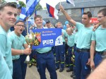 Als die THW-Jugend aus ihren Fahrzeugen ausstieg, mussten sie sich einen Weg durch das Spalier der Menschen bahnen, die dicht gedrängt den Weg zur Bühne säumten. Die Sieger des Bundeswettbewerbs konnten ihr Glück kaum fassen, was ihnen in Montabaur widerfuhr. Als sie es schließlich doch schafften, die Bühne zu betreten, brandete ihnen unvorstellbarer Jubel entgegen. Immer wieder musste der große Siegerpokal den Besuchern gezeigt werden, passend dazu dröhnte aus den Lautsprechern der EM-Hit "Major Tom".