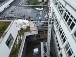 Damit das Dach zukünftig die Vorgaben des Gebäudeenergiegesetzes erfüllt, wird es im Zuge der Sanierung bis auf den Rohbetondecke zurückgebaut, sodass die Dämmschicht erneuert werden kann.