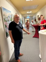 Neuwied. Der Rotary-Club Neuwied/Andernach trifft sich regelmäßig an feststehenden Orten. Das letzte Meeting fand an einem besonderen Ort, mit einem besonderen Künstler statt. Der Künstler Uwe Langnickel hat seine rotarischen Freunde gemeinsam mit dem ärztlichen Direktor Prof. Dr. Jens Standop und dem kaufmännischen Direktor Daniel Grube zur Vorstellung seiner neuen Ausstellung in den Verwaltungstrakt sowie das Foyer des DRK Krankenhauses eingeladen. Bereits vor 20 Jahren hat Uwe Langnickel eine Ausstellung vor Ort durchgeführt. Eine weitere war vor drei Jahren in Planung, musste aber aufgrund der Corona-Pandemie ausfallen.