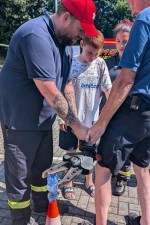 Raubach. Wehrführer Ansgar Geimer begrüßte die Kinder und stellte die anwesenden Kameraden und ihre Funktionen in der Feuerwehr sowie den Förderverein vor. Spaß hatten die Kinder beim Erklären der Fahrzeuge und als sie auch „richtige Feuerwehrkleidung“ und einen Helm anziehend durften. Bei dem warmen Wetter gab es mit D-Schläuchen auch eine kleine Wasserschlacht.