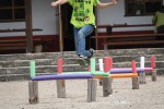 Die Disziplin Hindernislauf wurde von dem Museumsteam modern aufgepeppt, denn in der Antike war der Dromos oder Stadionlauf über 192 Meter Teil des Fünfkampfes. Das Überspringen des großen Hindernisses war für die erwachsenen Teilnehmer obligatorisch, ganz Kleine nutzten auch schon einmal den Weg darunter hindurch, was sehr lustig wirkte.