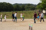 Die Mitarbeiter hatten fünf Stationen im Gelände aufgebaut, an denen wie schon zu Caesars Zeiten neben dem Reifenlauf das Diskus-Werfen, Hürdenlauf, Bogenschießen und das Spiel "Episkyros" auf dem Programm standen. Dieses antike griechische Ballspiel erinnerte an das altbekannte Völkerball, weil zwei Teams gegeneinander spielten, es wurden jedoch keine Personen abgeworfen. Ziel des Spiels war es, den Ball in das Torfeld der gegnerischen Mannschaft zu werfen, kicken oder rollen. Wer das schafft, bekommt einen Punkt. Aber wer übertritt oder den Ball über die Seitenlinie befördert, begeht ein Foul und muss den Ball an den Gegner abgeben. Bei diesem Spiel halfen Teamarbeit und der schiere Spaß am Spielen.
