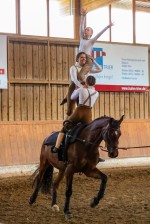 Im Anschluss gehen die Einzelvoltigierer der Leistungsklassen L und M an den Start. Sie turnen in einem Umlauf Pflicht und Kür.
