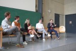 Nach der Mittagspause fand eine abschließende Fishbowl-Diskussion zum Mitmachen statt. Grünen-Politiker Carl-Bernhard von Heusinger, Henrik Lenzgen (Mehr Demokratie e.V.), Michell Dittgen (Deutsche Gesellschaft für Demokratiepädagogik e.V., Vorsitzender des Landesverbands Rheinland-Pfalz) sowie Jannis Graber (Referent für Strategische Steuerung Nachhaltigkeit in der Staatskanzlei Rheinland-Pfalz), diskutierten mit den Schülern und interessierten Bürgern über aktuelle Herausforderungen der Demokratie.