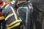 In drei Gruppen ging es unter Anleitung der beiden Ausbilder der Firma Weber an die Arbeit. Ein Fahrzeug lag auf dem Dach, eines auf der Seite und das dritte Fahrzeug stand auf seinen Rädern. Ziel war es, verschiedene Techniken der Rettung mittels akkubetriebener Geräte, wie zum Beispiel Schere, Spreizer oder Rettungszylinder zu üben. Zwischendurch gab es immer wieder Tipps und Hinweise von den Ausbildern.