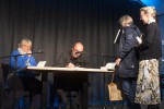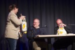 Das Musiker-Trio spielte die Nationalhymnen von Albanien, Polen und Ungarn, bevor der Gast eine lustige Textpassage aus seinem Roman "Die Erweiterung" vorlas, die zeigt, wie fixe Ideen im Kopf entstehen können.
