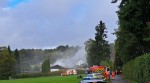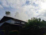 Aufgrund des bereits erfolgten Durchbrandes in den Giebelbereich des Gebäudes wurden auch dort Löscharbeiten notwendig. Nachdem der Brand unter Kontrolle gebracht wurde, transportierten die Feuerwehrleute das teilweise noch glühende Brandgut ins Freie, wo es endgültig abgelöscht wurde.