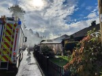 Breitscheid. Bereits während der Anfahrt erhielten die Einsatzkräfte die Information, dass sich noch zwei Personen im Gebäude befinden. Bei Eintreffen am Einsatzort stellten die Feuerwehrleute eine massive Rauchentwicklung aus einem Teil des Gebäudes und dem Dachbereich fest. Insbesondere die Küche des Wohnhauses war im Vollbrand.