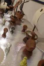 Ein von Günter Krummeich gefertigter silberner Fluss voller gekonnt gestalteter Keramik-Boote führt den Betrachter in die frühe Geschichte des Rheintals. Sabine Kösters gegenstandslose Enkaustikarbeiten bilden einen großen Kontrast zu den Bonsai-Bildern des Gastausstellers Dr. Uli Eltgen und den liebevoll aquarellierten Schafen und Rindern der Gastausstellerin Lea Clausen.