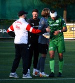 Gut möglich, dass "Watze" auch in den kommenden Wochen auf seinen Kapitän in der Innenverteidigung setzen muss. Denn überschattet wurde der sportliche Triumph durch eine Szene kurz vor Schluss als David Eberhardt und Lukas Müller heftig mit den Köpfen gegeneinander rasselten. Beide mussten minutenlang auf dem Platz behandelt werden. Für Müller ging es sofort mit einer heftig klaffenden Platzwunde an der Stirn ins Krankenhaus, wo er mit acht Stichen genäht wurde. Eberhardt konnte mit einem Turban um den Kopf zwar immerhin wieder selbst laufen, musste aber ebenfalls genäht werden (vier Stiche) und wird wohl ebenso erst einmal ausfallen.