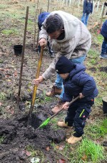 Im Gegensatz zu den kleinen Setzlingen bei den Pflanzaktionen der vergangenen Jahre waren die zu pflanzenden Himalaya-Birken schon fast zwei Meter groß, weshalb die Baumpaten sich beim Ausheben der Pflanzlöcher ziemlich ins Zeug legen mussten.