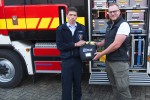 Der Wehrführer der Feuerwehr Puderbach, Sven Born, konnte bereits kurz nach der Öffnung der Tore eine große Zahl von interessierten Besuchern begrüßen. Besondere Freude bereitete die Übergabe eines AED. Es ist ein automatisierter externer Defibrillator, ein medizinisches Gerät, welches den Herzrhythmus selbstständig analysiert und bei Bedarf einen Stromimpuls abgeben kann. Felix Lichtenthäler, Chef der Holzbaufirma aus Steimel, spendete das Gerät und überreiche es an Sven Born. Das AED wird ab sofort auf dem Hilfeleistungsfahrzeug mitgeführt, das bei jeder Alarmierung mit in den Einsatz fährt.