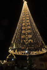 Waldbreitbach. Die Kinder waren mit selbstgebastelten Fackeln, Leuchtkugeln und Laternen erschienen. Der Veranstalter gab zusätzlich Feuerfackeln aus. In der Dunkelheit kamen die Lichter ausgezeichnet zur Geltung. Der Musikverein Wiedklang, der den Fackelzug bis zum Ende begleitete, stimmte "Am Weihnachtsbaume die Lichter brennen" an, als auf das Kommando der Kinderschar die 10.000 LED-Lichter am 18 Meter hohen Zunftbaum aufleuchteten. Eine Krippenszene läuft rund um den Ständebaum, der seit 2018 die erste Attraktion des Krippenwegs darstellt. Zu allen Stationen gab Ulrike Kesselheim kurze Erklärungen zur Geschichte ab.