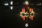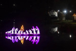 Mit "Kling Glöckchen" lockten die Wiedklang-Musiker die Prozession zu weiteren großen Attraktionen an die Wied. Der voll erleuchtete Adventskranz spiegelte sich prächtig im Wasser und bildete mit den dekorierten Gebäuden im Hintergrund ein festliches Bild, besonders gut von der Brücke aus zu sehen. Auf der gegenüberliegenden Brückenseite zieht die "schwimmende Krippe" seit zehn Jahren die Blicke auf sich. Sie ist einem Scherenschnitt nachempfunden, eine edle, acht Meter breite Silhouette mit Weihnachtsbaum und 1,80 Meter hohen Figuren.