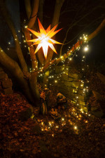 Viele Elemente haben mit dem Bergbau zu tun, so auch die Schwippbogen-Krippe in einer Vitrine. Ganz im Freien leuchtet der Stolz der Gemeinde Waldbreitbach, der riesengroße "Stern von Bethlehem" - ein weithin sichtbarer Komet, bestehend aus einer 3,5 Kilometer langen Lichterkette mit 3.500 Glühbirnen, die seit 25 Jahren erstrahlen. Für diese Attraktion werden ganz viele Helfer benötigt, die die Lichterkette an 3,5 Meter hohen Stangen aufhängen.