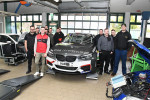Reinhard gewährt den angehenden Kraftfahrzeugtechnikermeistern der HwK Koblenz einen exklusiven Einblick in die Welt des Rennsports. Im Rahmen ihrer Ausbildung in den HwK-Werkstätten tauschten sie sich über technische Details des Rennwagens aus, wie das Vermessen von Fahrzeugen und die Unterschiede zwischen Straßen- und Rennfahrzeugen.
