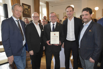 Unkel. Stadtbürgermeister Alfons Mußhoff begrüßte zahlreiche Gäste auch in Namen der Stadtbeigeordneten Daniel Schmitz und Knut von Wülfing. Im historischen Ratssaal kamen Vertreter des öffentlichen und gesellschaftlichen Lebens sowie der Unternehmerschaft zusammen. Darunter auch der Geehrte Engelbert Wallek, dessen Ehefrau Doris und Festredner Mark Büker, Geschäftsführer der Haus Rabenhorst O. Lauffs GmbH & Co. KG.