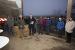 Der geplante Rundgang durch den Betrieb der Familie Quiring musste aus Sicherheitsgründen wegen der in Deutschland aufgetretenen Maul- und Klauenseuche entfallen. Bei jedem Besucher wurden die Schuhe dekontaminiert. Hausherr Matthias Quiring begrüßte die Gäste und gab einen kurzen Abriss über seinen Betrieb. In der Diskussion mit den Gästen spielte die Bürokratie und die Auflagen für die Landwirte eine entscheidende Rolle. Es wurde von der Politik klar herausgearbeitet, dass die Landwirte für unsere Ernährung unersetzlich sind. Hierfür müsse unsere Bevölkerung noch mehr sensibilisiert werden. Hallerbach berichtete, dass in der Erntezeit ihn immer wieder massenweise Beschwerden erreichen, dass die Landwirte noch spätabends und am Wochenende mit ihren Maschinen fahren. Gordon Schnieders machte klar, dass die Bauern 365 Tage für die Bevölkerung arbeiten und von der Vier-Tage-Woche bei vollem Lohnausgleich nur träumen können.