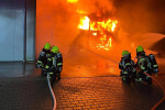 Horhausen. Beim Eintreffen der ersten Kräfte wurde festgestellt, dass in direkter Nachbarschaft zu der Halle mehrere Lkw in Brand geraten waren. Parallel zur ersten Erkundung der Lage wurde direkt eine Wasserversorgung aus einem Unterflurhydranten aufgebaut.