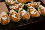 Moderator Tim Maur kündigte die erste kulinarische Überraschung in Form von heißer Sangria an. Tim Correia Dias vom L’aperitif in Neuwied versprach weitere portugiesische Tapas nach den nächsten Gesangsblöcken. Er kredenzte Pasteis de Bacalhau mit Zitronen-Aioli, mediterranes Muffin und hausgemachte Praline.