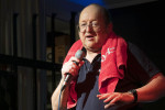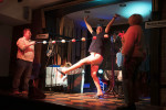 Der Badekappen-Rap und das Senioren-Workout-Programm nach Pool-Pädagogin Dinse-Poltmann brachten als Mitmach-Nummern die Waldbreitbacher in Schwung. Der old school Rapper mit blauer Plastik-Undercut-Frisur rockte den Saal auch mit Hip-Hop und Breakdance. Als Zugabe überzeugte der Poolrocker mit elegantem Wasserballett über und unter der Wasserlinie.