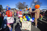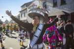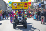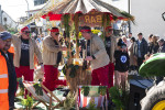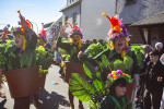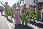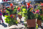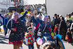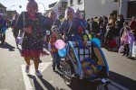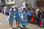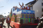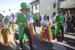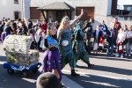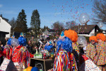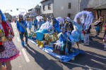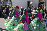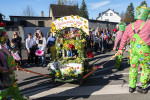Angeführt und gesichert wurde der Karnevalszug durch die Freiwillige Feuerwehr. Ohne Feuer, aber mit glänzenden Schuppen waren bunte Drachen mit ihren Drachenwächtern unterwegs. Ihnen folgten farbenprächtige Blüten nach dem Motto "Klänmäschd blüht", die die Sonne prächtig zum Blühen und Leuchten brachte. Fußgruppen als bunte Blumen in verschiedenen Ausführungen bildeten konsequenter Weise das Hauptmotiv. Grünes Blattwerk legte das Dschungelcamp in den Schatten, aber Regenbogen und Kobold hoben die Frühlingsstimmung gleich wieder an.