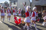 Blumentöpfe wanderten vor dem großen Prunkwagen des Elferrats, von dem eifrig Kamellen geworfen wurden. Eine Blumenwiese und liebliche Katzenladys in rosa Plüsch bewegten sich zur Musik des Spielmannszugs Kleinmaischeid. Die kopfstarken rot-weißen Garden, bestehend aus Jugend, Senioren, Tanzmäusen und Funken bildeten mit dem Wagen des Elferrats den Abschluss des bunten Karnevalszugs in Kleinmaischeid.