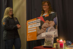 Fabia Werle nahm als Vertreterin der Stefan Morsch-Stiftung, die leukämie- und tumorkranke Patienten und ihre Familien unterstützt, einen Spendenscheck über 1.000 Euro in Empfang, den Erlös aus dem Jahr 2024. Trotz des geringen Autorenanteils an Taschenbüchern ist Ulrike Puderbach die Spende für die Stiftung wichtig, weil die Stammzellen-Spenderdatei lebensrettend ist und die Autorin finanziell nicht vom Schreiben abhängig ist.