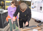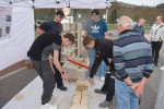 Daneben befand sich ein Dachdeckerbetrieb, bei dem Interessenten unter anderem üben konnten, wie man fachgerecht Schiefer passend bearbeitet. Der Infostand der Innung der Schornsteinfeger zog ebenfalls viele Interessierte an, da bereits die Kleidung der Berater ins Auge fiel, die standesgemäß, wie in früheren Zeiten, ihren schwarzen Anzug und Zylinder am Leib trugen.