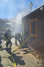 Vor Ort stand ein Teil der Gastronomieküche in Vollbrand. Wegen der Holzbauweise des Hauses breitete sich das Feuer bereits auf die Wände und den abgehangenen Deckenbereich aus. Die Betreiber, die eigene Löschversuche unternommen hatten, wurden durch die Feuerwehr an den Rettungsdienst übergeben. Aufgrund der Anzahl der Verletzten und zum Eigenschutz der Einsatzkräfte wurde zusätzlich der DRK-Ortsverband Neustadt/Wied nachalarmiert.
